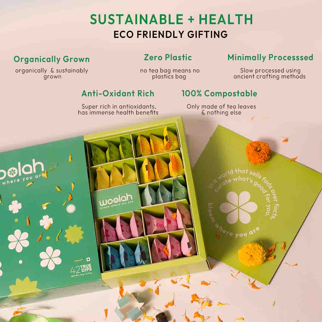 Truedips are Crafted in microbatches, each batch comes with its own eccentric taste & aroma. So everycup of WOOLAH’S TrueDips is a cheerful rendezvous with nature and itsbewildering flavours. WithZERO harmful residues, ZERO preservatives, ZERO plastic or toxic chemicals,TrueDips is not just a delight foryour body but also for our ailing ecosystem.