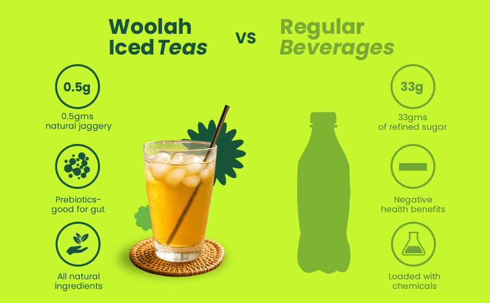 When you are unwinding at home or stepped home after a walk or running some chores. Woolah Iced Teas provide you with the refreshment which you are looking for & that too with only 0.5gms of Jaggery & all natural ingredients. Savour the healthy sips!