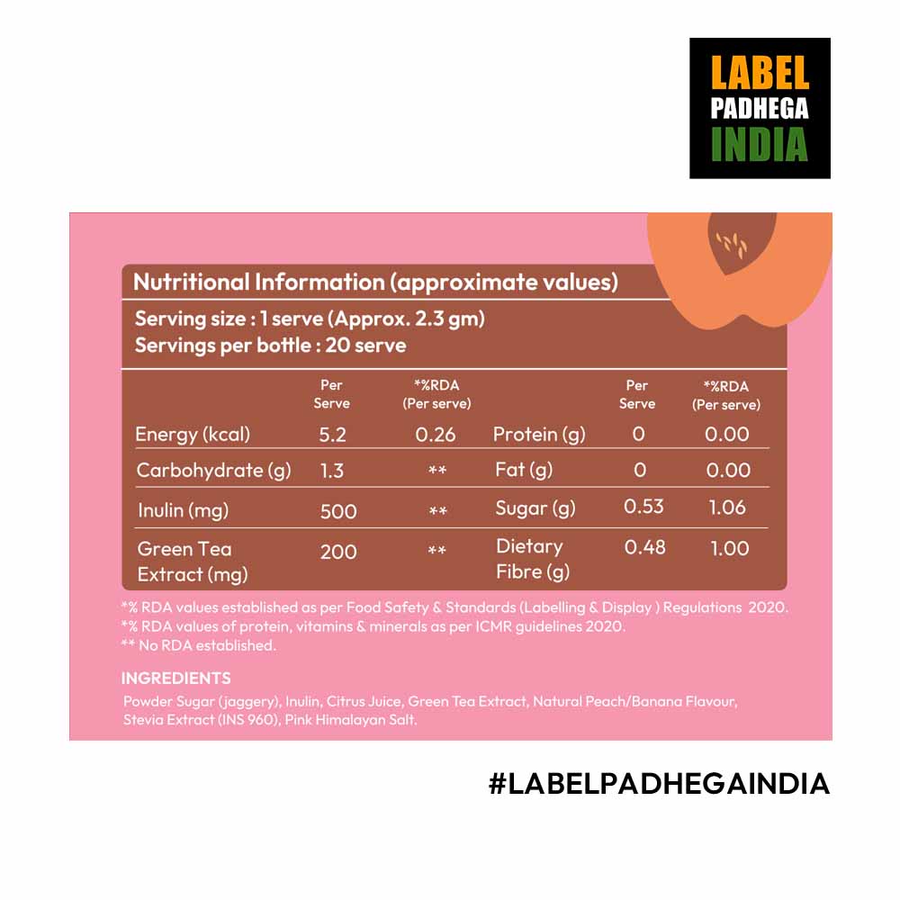 Prebiotic Tangy Peach Iced Tea with only 0.5 gms of Sugar (Jaggery) & all natural ingredients.